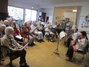 12/8(月)デイケア、12/10(水)デイサービス&グループホームにボランティアで三味線と歌の披露がありました(*^^*) 日頃と違う空気感に嬉しそうに聞き入って、喜んで頂きました♪