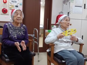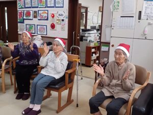 皆様にサンタの帽子をかぶって頂き、レクリエーション体操&クリスマスソングを合唱♪