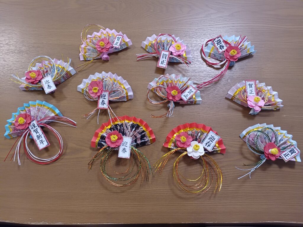 お正月用の生け花は職員が心を込めて準備!華やかで素敵な生け花にご入居者様もうっとり(*´▽`*)