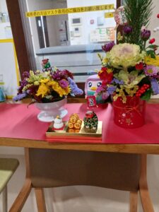 お正月用の生け花は職員が心を込めて準備!華やかで素敵な生け花にご入居者様もうっとり(*´▽`*)