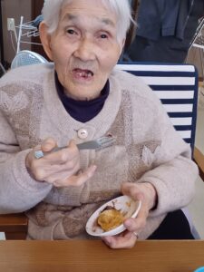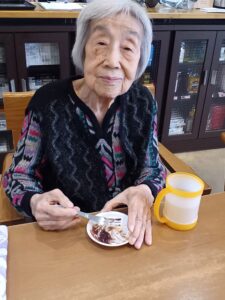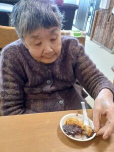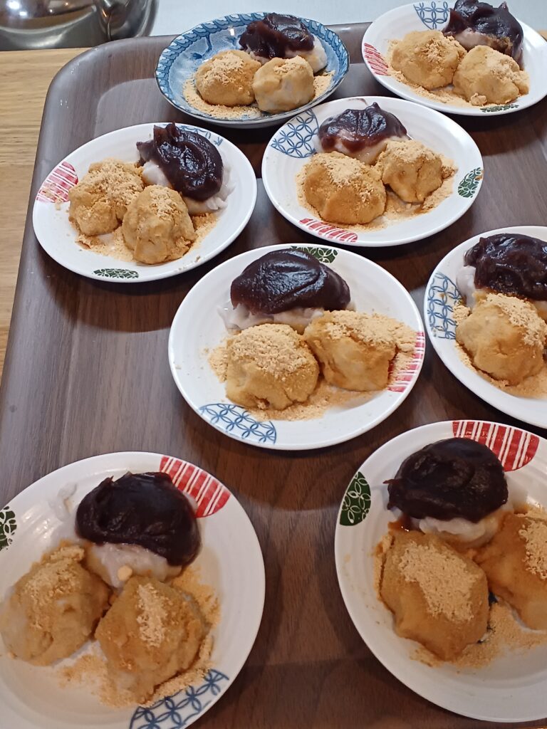 おやつには、職員手作りの「里芋入りおはぎ」を召し上がって頂きました😋