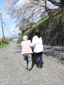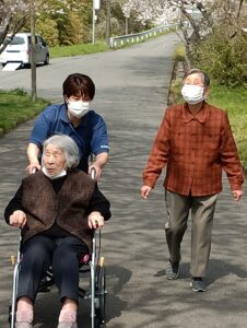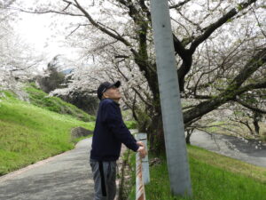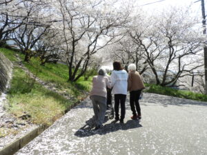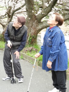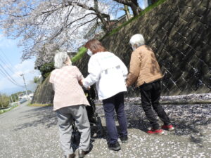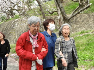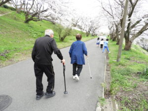 今回は🌸桜🌸を見ながら屋外歩行訓練☺